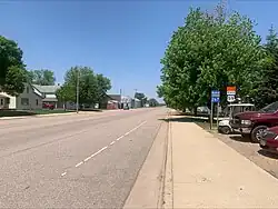 It passes by the runway for the Slayton Municipal Airport near its northern terminus.[2]