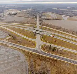 | Winona | Pleasant Hill Township | 36.691 | 59.048 | Interchange; Exit 258 on I-90 | |