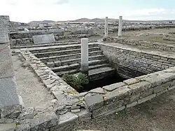 The Minoan Fountain was a monumental public fountain hewn directly from the natural rock. It is located directly behind the Stoa of Antigonos outside the temenos of the Sanctuary of Apollo on the island of Delos. The fountainhouse formalized the use of the sacred spring, and was dedicated to the Cult of the Nymphs.[1]