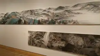 In the 1970s, Araki was mentored by painter Zhang Daqian. After Zhang's death, Araki created five paintings demonstrating his mentor's influence and his personal interest in modern Japanese painting methods. These paintings, which are each over 70 feet long, contain multiple panels illustrating landscapes, dragons, and other natural scenes.[4] In addition to influences from Zhang, these paintings also demonstrate influence from Bada Shanren, Ben Shahn, and medieval Japanese Zen painters.[5]