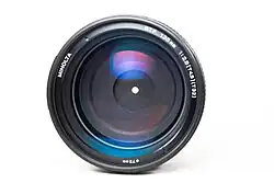 Originally produced by Minolta, and currently produced by Sony, the STF 135mm f/2.8 [T4.5] is a photographic lens compatible with cameras using the Minolta AF and Sony α A-mount. STF stands for Smooth Trans Focus, in reference to its special optical system, which is intended to smooth the transition between the plane of focus and out-of-focus areas in the image. This is accomplished by the use of an apodization filter that provides the high-quality bokeh effect. The lens is not a soft-focus lens.