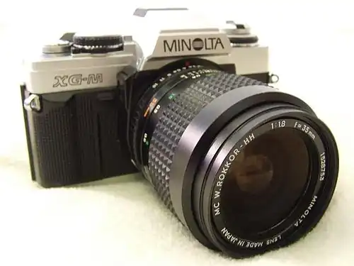 The Minolta XG-M was a 35mm single-lens reflex camera introduced in 1981 by Minolta of Japan. It was also known as the X-70 on the Japanese market, in which it was not available until 1982. When released, it was the top model in Minolta's XG series of consumer-grade manual focus SLRs, replacing the XG-9. Changes from that model included a metered manual mode (the XG-9's meter was switched off in manual), and a revised body style with rearranged controls. This was also the first camera to use Minolta's new logo, which was used until the 2003 merger into Konica Minolta.
