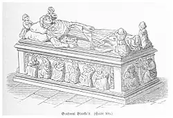 After the city fire of 1275, the foundation-stone for the new church was laid by Ottokar Přemysl.[2] It was one of the first Gothic churches in the east-Austrian area. After Ottokar's death in the battle on the Marchfeld, he was laid out here for thirty weeks.[2]