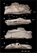 - ^ a b Longrich, N.R.; Pereda-Suberbiola, X.; Jalil, N.-E.; Khaldoune, F.; Jourani, E. (2017). "An abelisaurid from the latest Cretaceous (late Maastrichtian) of Morocco, North Africa". Cretaceous Research. 76: 40–52. Bibcode:2017CrRes..76...40L. doi:10.1016/j.cretres.2017.03.021.