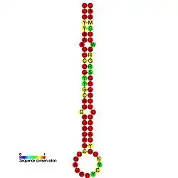 ![]() Predicted secondary structure and sequence conservation of mir-BHRF1-2 | |