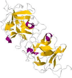 The native state of miraculin is a tetramer consisting of two dimers, each held together by a disulfide bridge.[14] Both tetramer miraculin and native dimer miraculin in its crude state have the taste-modifying activity of turning sour tastes into sweet tastes.[15] Miraculin belongs to the Kunitz STI protease inhibitor family.