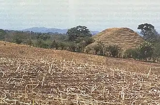 The site itself consists of 32 mounds spread out over an area of about 2 sq. km, with several smaller ones outside its immediate vicinity.[7] It features a well-defined ceremonial core, dominated by several large platforms and pyramids, including the 15-meter-tall mound 20, the 8.5-meter-tall mound 10, and the large mound 27 ceremonial platforms.[8][9] Mirador consists of a site plan followed by many other ancient cities in Chiapas known as the Middle Formative Chiapas (MFC) complex. Originating with the Olmec city of La Venta, this layout generally includes a large pyramid (in this case, mound 20) facing a long platform (mound 25), and associated with a large ceremonial acropolis (mound 27).[10]