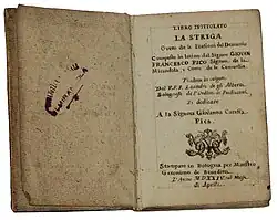 Public opinion in Mirandola began to harshly criticise these death sentences, so that in May 1523 Giovanni Francesco Pico had to quickly (in just ten days) write and publish in Bologna the three-book dialogue Strix, sive de ludificatione daemonum to justify the killing of those accused of witchcraft.[9][10]