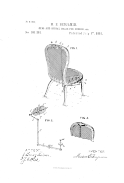 On July 17, 1888,[10] she obtained a patent for her invention, the Gong and Signal Chair for Hotels.[11][12] As its name suggests, the chair had both a gong and signal connected to it.[13] When the person in the chair pressed a small button on the side of the chair, it would ring a bell and display the red side of a ball on the back of the chair,[14][15][16] allowing the attendant to see which guest needed help. The chair was designed to reduce expenses by reducing the need for waiters and attendants, and "to obviate the necessity of hand clapping or calling aloud" to obtain assistance.[14] Benjamin claimed that as many as half or a third of attendants would be needed, as well as the atmosphere changing to quiet and comfort for the patrons (which greatly promoted the chair in hotels).[17]