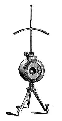 Thomson decided that he needed an extremely sensitive instrument after he took part in the failed attempt to lay a transatlantic telegraph cable in 1857. He worked on the device while waiting for a new expedition the following year. He first looked at improving a galvanometer used by Hermann von Helmholtz to measure the speed of nerve signals in 1849. Helmholtz's galvanometer had a mirror fixed to the moving needle, which was used to project a beam of light onto the opposite wall, thus greatly amplifying the signal. Thomson intended to make this more sensitive by reducing the mass of the moving parts, but in a flash of inspiration while watching the light reflected from his monocle suspended around his neck, he realised that he could dispense with the needle and its mounting altogether. He instead used a small piece of mirrored glass with a small piece of magnetised steel glued on the back. This was suspended by a thread in the magnetic field of the fixed sensing coil. In a hurry to try the idea, Thomson first used a hair from his dog, but later used a silk thread from the dress of his niece Agnes.[1]