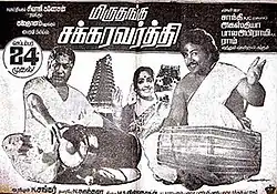 Miruthanga Chakravarthi (transl. The Mridangam Maestro) is a 1983 Indian Tamil-language musical drama film directed by K. Shankar and produced by Sakunthala N. The film stars Sivaji Ganesan, K. R. Vijaya, M. N. Nambiar, V. K. Ramasamy, Prabhu and Sulakshana.[2] It was released on 24 September 1983.[3]