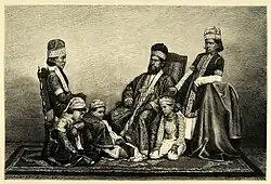 It is a historical royal and noble title,[3] denoting the rank of a royal prince,[3] high nobleman,[4] distinguished military commander,[4] or a scholar.[1] Specifically, it was used as a title by (and today signifies patriarchal lineage to) the various Persian Empires, the Nogai Horde, Shirvanshahs and Circassians of the European Caucasus, the Mughals / Moguls of the Indian Subcontinent. It was also a title bestowed upon members of the highest aristocracies in Tatar states, such as the Khanates of Kazan and Astrakhan.