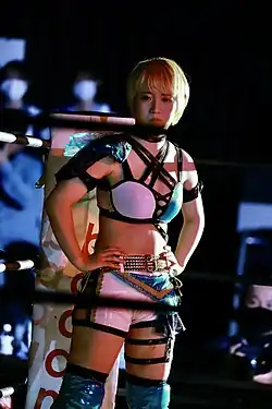Misa Matsui (松井珠紗, Matsui Misa) is a Japanese professional wrestler, currently signed to Dream Star Fighting Marigold[3] and is a part of Darkness Revolution. She is previously known for her tenure with the Japanese promotion Actwres girl'Z (AWG) and several brief others from the Japanese independent scene such as Pro Wrestling Wave, Seadlinnng and Oz Academy.[4]