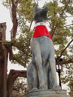 Misaki can be often seen as animals. The Yatagarasu that appears in Japanese mythology is one type of misaki, and when Yatagarasu guided Emperor Jimmu during Jimmu's eastern journey, this provides one example of the characteristics of misaki.[5] Also, the kitsune within Inari Ōkami household are also one type of misaki, and like these Yatagarasu and kitsune, those that appear as heralding something important and the incarnation of gods are also considered misaki.[1] In Iwaki, Fukushima Prefecture, on January 11, when they first hoe the field, they would say "kamisaki kamisaki" and call for the bird, and there is an event for praying "noutate" for the sake of the year's plentiful harvest.[5]