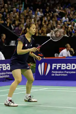 Misaki Matsutomo (松友 美佐紀, Matsutomo Misaki; born 8 February 1992) is a Japanese badminton player who is a doubles specialist.[2] She won the gold medal at the 2016 Summer Olympic women's doubles alongside Ayaka Takahashi. Despite playing doubles, she was also a finalist in girls' singles at the 2010 BWF World Junior Championships in Mexico.