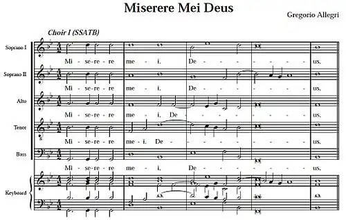 - ^ "Miserere mei, Deus - Have Mercy upon me, O God (Allegri)". Cantate Domino. Retrieved 5 July 2025.