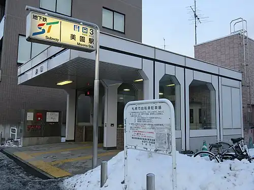 Misono Station (美園駅) is a metro station in Toyohira-ku, Sapporo, Hokkaido, Japan. The station number is H12. It is located in the Tōhō Line.