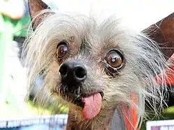 Miss Ellie (c. 1993 – June 1, 2010), a blind American Chinese Crested hairless dog, was the 2009 winner in the pedigree section of the World's Ugliest Dog Contest.[1] She appeared in shows at the Comedy Barn in Pigeon Forge, Tennessee, and was featured on the Animal Planet cable show Dogs 101. Dawn Goehring rescued Miss Ellie at seven years old. Miss Ellie died on June 1, 2010, at age 17.[1][2][3][4]