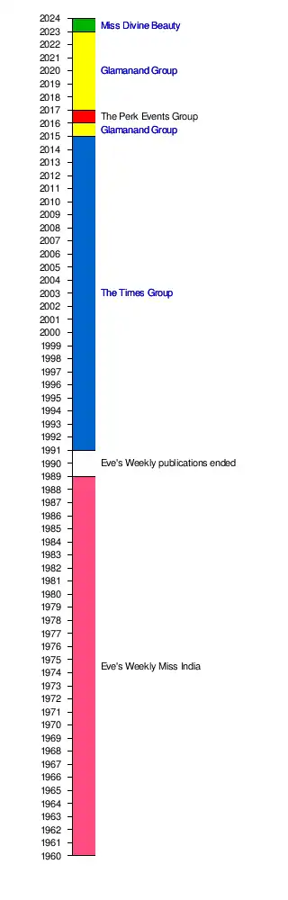 - ^ "Fifty years of Miss India". The Times of India. 24 March 2013. Archived from the original on 27 March 2013. Retrieved 23 December 2023.