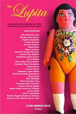 The Miss Lupita project was initiated in Mexico City in 2010, with the aim being the revitalization of the craft of making dolls. The name is based on the Mexico City name for the dolls (in Celaya they are simply called cartonería dolls).[2] The base of the project would be to introduce new and contemporary designs based on urban culture through workshops in Mexico City.[2][4]