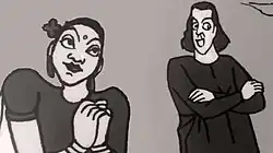 "Mylapore Vakkeelathu" explores a young woman's ambition to marry a lawyer from the Mylapore district of Chennai – "Mylapore vakeelaathu mattupennaaven" ("I shall be a Mylapore lawyer's daughter-in-law").[30] It also reflects the trend that popular and wealthy people of that period lived in Mylapore,[31] and highlights the association between Mylapore and lawyers.[30] "Kaalaiyiley" ridicules India's ration system through the lyrics "Sarkaraikku queuevil poi saanjukittu nikkanum, sanda pottu patthu balam sakkata mann vaanganum" ("I have to stand in the queue for sugar, and after a lot of fighting, buy ten measures of gutter mud").[32][33]