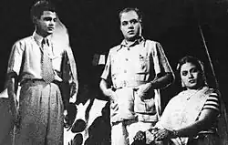 The film featured Pushpavalli in the title role, and M. S. Sundari Bai as her friend Sundari.[1][16] It was the former's second appearance in a Tamil film, after Gemini's Dasi Aparanji (1944).[6] N. Seetharaman, who later became known as Javar Seetharaman, made his acting debut in a minor role with this film, portraying the director of Kala Mandhiram.[1][17] The film also marked the cinematic debut of Ramaswamy Ganesan, who later became known as Gemini Ganesan. He was then working in Gemini's casting department, and Ramnoth, who had faith in Ganesan's acting prowess, cast him in the minor role of an assistant director employed by Seetharaman's character.[11] In his only scene in the film, the assistant director tells the director, "Sir, Collection – Record Break", referring to the tickets having been sold out, to which the director replies that while the collection is "record break", in some time the theatre too would be "break" (broken) due to Malini having gone missing.[18] Ganesan was credited onscreen as "R.G.", standing for "Ramaswamy Ganesan".[19][20] This was the film where he met his future paramour Pushpavalli.[21]