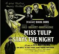 Miss Tulip Stays the Night (also known as Dead by Morning) is a 1955 British comedy crime film starring Diana Dors, Patrick Holt, Jack Hulbert and Cicely Courtneidge.[2] It was the last major feature film directed by Leslie Arliss.[3] The screenplay concerns a crime writer and his wife who stay at a country house where a mysterious corpse appears.