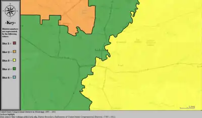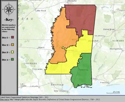 Table of United States congressional district boundary maps in the State of Mississippi, presented chronologically.[3] All redistricting events that took place in Mississippi between 1973 and 2013 are shown.