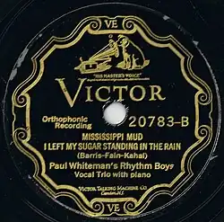 - ^ Paul Whiteman's Rhythm Boys – Sweet L'il / Ain't She Sweet / Mississippi Mud / I Left My Sugar Standing In The Rain. Discogs.
