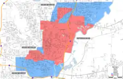 The Capitol Complex Improvement District (CCID) was created by the Mississippi Legislature in 2017 as a means to improve infrastructure in areas of Jackson near the Capitol and other state government property.[8] Although its legal intention is to operate similarly to a business improvement district for government properties, it also came to serve as an expanded jurisdictional limit for the Mississippi Capitol Police to patrol beyond the immediate blocks surrounding the Capitol property. This expansion of the Capitol Police's powers and patrol area was seen as preemptive power grab by Legislature Republicans of the Democrat-led City of Jackson. The bill authors cite it as a response to crime in Jackson. The law expanding the CCID also creates a separate court to prosecute state law offenses cited by the Capitol Police. Theses courts would have judges appointed by the Supreme Court of Mississippi and prosecutors appointed by the Governor rather than the elected judges and prosecutors of the Hinds County court system.[9]