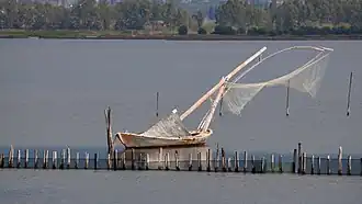 These are passive gears and their position as well as their nature and the effective fishing period, remained unchanged during the last centuries. The so-called independent fishermen who fish mainly with lights, spears and longlines use the non-leased area of the lagoon system. Furthermore, gill nets and dip nets are also used in the lagoon all over the year.