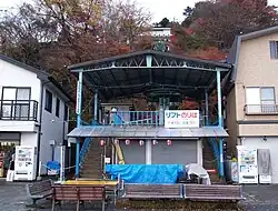 The funicular line is commonly known as Mitake Tozan Cable (御岳登山ケーブル, Mitake Tozan Kēburu). The difference in elevation between the two stations is 424 m (1,390 ft).[2] Construction began in 1930,[3] and operation started in 1935. In 1944, it was suspended due to World War II and partially scrapped for material,[3] with operation only starting again in 1951.