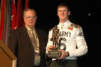 He was named Mr. Football in Arkansas by the Arkansas Democrat-Gazette. Mustain started at quarterback for the West team in the 2006 edition of U.S. Army All-American Bowl in San Antonio, Texas, where he was awarded the Hall Trophy as National High School Player of the Year. He similarly swept the other major 'national player of the year' awards (Gatorade, USA Today, PARADE) for the season. Scout.com ranked him as the top high school recruit for the class of 2006.[3] Mustain had told reporters he planned to play for either Notre Dame, Tennessee, Alabama, or his home-state Arkansas Razorbacks.