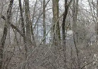 The Mitchell Jackson Farmhouse just visible through heavy brush | |