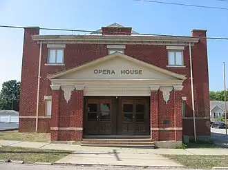 Mitchell Opera House, also known as Mitchell City Hall, is a historic theater building located at Mitchell, Lawrence County, Indiana. It was built in 1905–1906, and is a two-story, brick building measuring 45 feet wide and 85 feet deep. It has a one-story projecting entry, gable roof, and gambrel roof over the stage area at the rear of the building. It housed a theater until 1927, then served as city hall between 1952 and 1979.[2]: 2–3