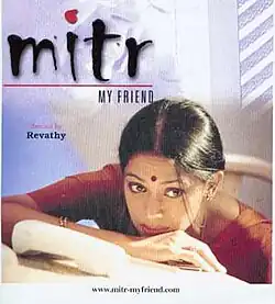 Mitr, My Friend is a 2002 Indian English-language drama film directed by Revathi in her directorial debut, and written by V. Priya and Sudha Kongara. The film stars Shobana, Nasir Abdullah and Preeti Vissa. Set partly in India and the US[1] the film was also noted for having an all-woman crew.[2] The movie won the Best English Film of the Year award at the 49th National Film Awards. The movie also won Best Actress and Best Editor awards for Shobhana and Beena Paul, respectively, at the same function.[3] Revathi received the "Special Jury Award: Silver Peacock" at the 33rd International Film Festival of India.[4] The film also contains Tamil dialogues, while most of the songs are in Hindi.[5]