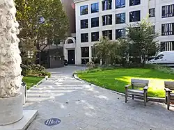 The square occupies the site of the cloister of Holy Trinity Priory, Aldgate which was demolished under Henry VIII at the time of the Dissolution of the Monasteries.[1] The south corner of the square was the site of the murder of Catherine Eddowes by Jack the Ripper. Her mutilated body was found there at 1:44 in the morning on 30 September 1888. This was the westernmost of the Whitechapel murders and the only one located within the City of London. [2]
