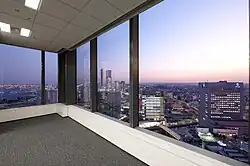 To mark the end of its site redevelopment project outside Yokohama Station, on December 16, 2009, the company completed its construction of Yokohama Dia Building, which was among the largest buildings in the area and had a unique appearance of uniform design and glass curtain walls.[5] Yokohama Dia Building is 31 stories high, 2 stories deep and has a 2-story-high penthouse. It measures 157.7 meters in height (which is the third tallest after Landmark Tower and Queens Tower (A) in Yokohama) and has an area size of 69,977 square meters. The 3rd to 6th floors are for commercial uses and are connected to Yokohama Bay Quarter on each floor, while the 7th to 30th floors are designated rental office space. The architecture was a long-awaited, large-scale office building in Yokohama where development of large office buildings remained rather inactive since the 1990s. It was also an office building of high quality that could compete with those constructed one after another in Tokyo during the 2000s.[6] The building is connected directly to Yokohama Station via a pedestrian deck (Bay Quarter Walkway) that was concurrently constructed and allows people to access the station without getting rained on.