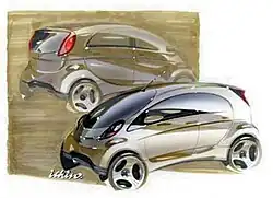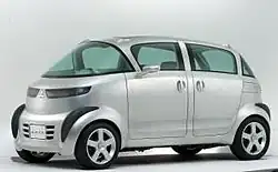 Two prototypes were exhibited during the car's development. The first was the "i" Concept, which debuted at the 60th Frankfurt Motor Show in 2003, and previewed the car's striking exterior.[2] Motoring journalists were quick to seize on the distinctive silhouette, calling it "a very good egg",[6] and a "crystal ball" with which to see the future of Mitsubishi.[7] One reviewer even speculated it to be an allusion by the vehicle's French-born designer Olivier Boulay to the Renault 4CV, France's popular post-war "people's car" with which the i shared its four-seat, rear-engined layout.[7] Its styling was formally lauded when the i won the Grand Prize at the 50th anniversary Good Design Awards from the Japanese Ministry of Economy, Trade and Industry in October 2006, the first kei car to win the award.[8][9]