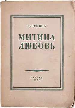 Mitya's Love (Russian: Митина любовь, Mi'tina Lyubo'v) is a short novel by the Nobel Prize-winning Russian author Ivan Bunin written in 1924 and first published in books XXIII and XXIV of the Sovremennye zapiski, a Paris-based literary journal in 1925.[1][2] It also featured in (and gave the title to) a compilation of novelets and short stories published the same year in France.