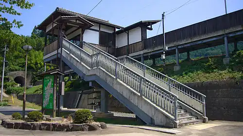 Miyamoto Musashi Station (宮本武蔵駅, Miyamoto-Musashi-eki) is a passenger railway station located in the city of Mimasaka, Okayama Prefecture, Japan. It is operated by the third-sector semi-public railway operator Chizu Express.[1] The station takes its name from the famous warrior Miyamoto Musashi, who (according to one theory) was born nearby.