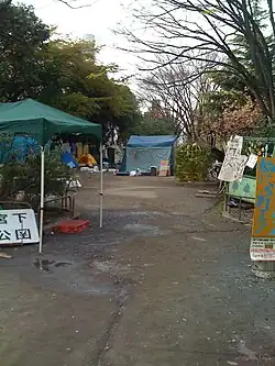 Plans by Nike to buy out the name of Miyashita Park, rename it "Miyashita Nike Park", install skateboarding grounds and a cafe, and remove local homeless squatters from the park caused controversy in 2008.[1][2]