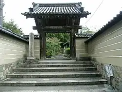 In March 1551, Nagayoshi faced two failed assassination attempts, planned by Yoshiteru. Later, On the night of March 7, Nagayoshi invited Ise Sadayoshi to the Kisshoin camp for a drinking party, and an arson incident occurred in attempt to harm Nagayoshi. On the 14th day of the same month, Nagayoshi was invited to the Ise residence and was attacked by a shogunate official, Shinji Kenko, and injured. The next morning, Miyoshi Masakatsu and Kozai Motonari, both of Harumoto's side, set fire to the Higashiyama area.[40] On May 5, Nagayoshi's ally and his wife's adoptive father, Yusa Naganori, was assassinated by the Jishu monk Shuami, to whom he had revered.[41] On July 14, Nagayoshi sent a large army of 40,000 soldiers gathered from Settsu, Awa, Izumi and other provinces under the command of Matsunaga Hisahide and his brother, Matsunaga Nagayori, to engage the army of Hosokawa Harumoto in the battle Shokoku-ji Temple in Kamigyo Ward, Kyoto City, Kyoto Prefecture. Hisahide and Nagayori surrounded Shokoku-ji Temple with a large army of 40,000 men. After fighting that lasted until dawn in July 15, the Shokoku-ji Temple was set ablaze. As a result of this battle, Yoshiteru and Harumoto were unable to return to Kyoto by force, and Rokkaku Sadayori, who supported them, began peace negotiations.[42][43][44][45]