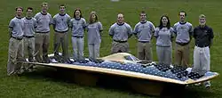 The team, located on the campus of the University of Missouri and run entirely by students, seeks to promote awareness of alternative fuels, develop technology, and allow members to gain practical experience through constructing a hydrogen vehicle. Advised by Professor Richard Whelove of the Mechanical and Aerospace Engineering Department, as well as Richard Wallace of the Electrical Engineering Department, the team was formerly known as the Mizzou Solar Car Team. The team switched over to hydrogen after 6 generations of solar cars. The team remains advised by Richard Whelove, alongside Michael Devaney of the Electrical Engineering Department.[2] The team's first venture into hydrogen powered vehicles was with Tigergen I which ran on two 1.2 kW Ballard fuel cells and exhibitioned in the North American Solar Challenge as a demonstration vehicle.[3] The team's second vehicle, Tigergen II, operated on a single 1.2 kW Ballard fuel cell and competed in the Urban Concept category of the Shell Eco Marathon, winning first place in the hydrogen category and fourth place overall in 2011. The team's current vehicle, Tigergen III, operates on two 1 kW Horizon fuel cells and competed Shell Eco Marathon Americas competition, placing third in the hydrogen UrbanConcept category.