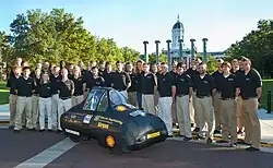 The Mizzou Hydrogen Car Team designs, builds and competes with an Urban Concept hydrogen fuel cell vehicle run by students at the University of Missouri in Columbia, Missouri. They recently competed with their vehicle named "Tigergen III" in the 2013 Shell Eco-Marathon. At the competition they achieved 8.8 mi/kWh which placed them 3rd in the UrbanConcept Hydrogen category.[1] The team also won an off-track award for "Best Team Spirit"