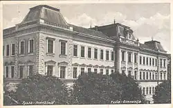 Austria-Hungary annexed Bosnia-Herzegovina on 6 October 1908, which caused the Annexation Crisis in Europe. The Kingdom of Serbia protested and mobilised its army, but then on 31 March 1909, it formally accepted the annexation.[4] In 1911, Mladen Stojanović became a member of the secret association of students of the Tuzla gymnasium called Narodno Jedinstvo (National Unity); its members described it as a youth society of nationalists.[5][6] It was one of a group of diverse student organisations later called Young Bosnia, which strongly opposed Austria-Hungary's rule over Bosnia-Herzegovina.[7] The activists of Young Bosnia were Bosnian Serbs, Muslims, and Croats, though most were Serbs.[8] The first organisation regarded to be part of this group was established in 1904 by Serb students of the Mostar Gymnasium.[7] 1905 saw considerable political unrest among the Serb and Croat students of the Tuzla gymnasium. Although the provincial government imposed the name "Bosnian" on the language of the province (Serbo-Croatian), the students demonstratively termed it as Serbian or Croatian depending on their ethnic affiliation.[9]