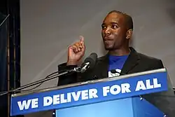 The DA achieved 34.6% of the vote in the 2011 local government elections in Johannesburg, with 752,304 votes.[12] He led a caucus of 90 members of the 260 seats in Johannesburg City Council. The mayoral seat was won by the ANC and Maimane therefore took up the position of Leader of the Official Opposition. In the Council, Maimane served on the Finance Committee, and on the Governance Committee that he had personally pushed to have constituted. He was selected as DA national spokesperson later in 2011.[13]