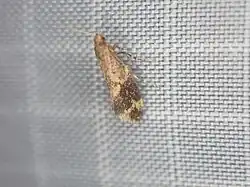 M. hudsoni is a small moth with a dark brown appearance with ochreous coloured scales scattered over the forewings.[2] The antennae of the adult of this species is ochreous yellow and the forewings are greater than 3.4 mm in length.[2] This species is very similar in appearance to its near relatives M. fusca and M. fallax.[2] However the genitalia of M. hudsoni is quite distinct.[2] M. hudsoni also inhabits a range that does not overlap with M. fusca.[2]