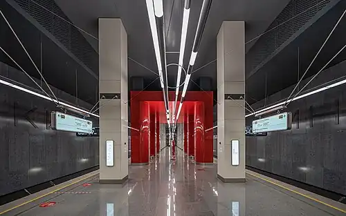 Mnyovniki (Russian: Мнёвники) is a station on the Bolshaya Koltsevaya line of the Moscow Metro. It opened on 1 April 2021.[3] It remained the terminus of the line until on 7 December 2021 an extension to Kakhovskaya opened.[4]