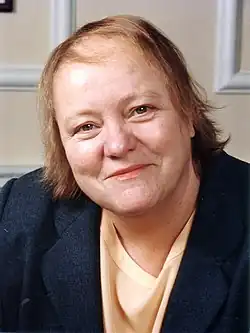 Mowlam was born in Watford, Hertfordshire, England, the middle of three children of Tina and Frank,[1] but grew up in Coventry, where her father progressed to become Coventry's assistant postmaster. She would later be awarded the Freedom of the City in 1999.[2] She was the only one of the family's three children to pass the 11-plus exam. She started at Chiswick Girls' grammar school in West London, then moved to Coundon Court School in Coventry,[2] one of the first comprehensive schools in the country.[1] She then studied at Trevelyan College, Durham University, reading sociology and anthropology. She joined the Labour Party in her first year.[1] She became the Secretary of the Durham Union Society in 1969 and later went on to become the vice-president of the Durham Students' Union. She worked for then-MP (Labour) Tony Benn in London and American writer Alvin Toffler in New York, moving to the United States with her then-boyfriend and studying for a PhD in political science at the University of Iowa[1] on the effects of the Swiss system of referendums.[3][4]